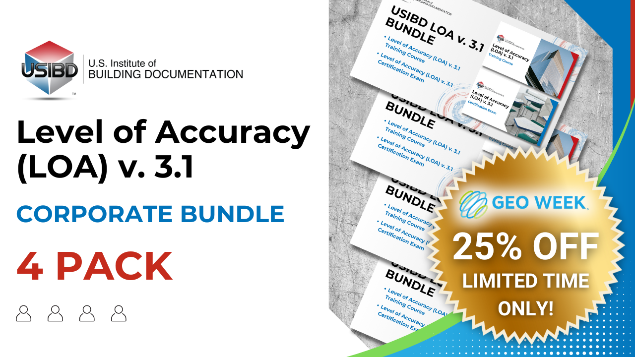 Train and certify your team with the USIBD LOA v. 3.1 Corporate Bundle. This package includes 4 seats for the complete LOA Training Course + LOA Certification Exam bundle, giving your staff both the knowledge and credentials they need to confidently apply the Level of Accuracy (LOA) Specification v. 3.1. Bundle now and save 25% with our GeoWeek 2026 pricing!