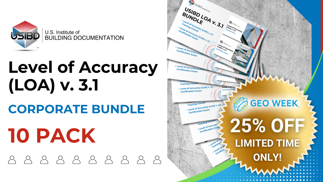 Train and certify your team with the USIBD LOA v. 3.1 Corporate Bundle. This package includes 10 seats for the complete LOA Training Course + LOA Certification Exam bundle, giving your staff both the knowledge and credentials they need to confidently apply the Level of Accuracy (LOA) Specification v. 3.1. Bundle now and save 25% with our GeoWeek 2026 pricing!